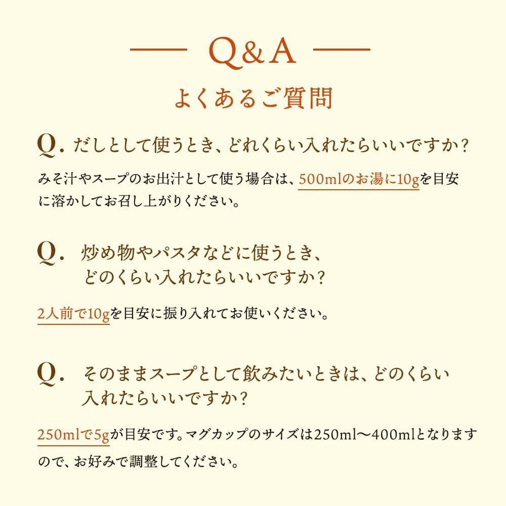 毎日の食卓に欠かせない、このスープは、厳選された国産の素材をふんだんに使用した、まさに“味のエッセンス”です!お料理の幅が広がり、自宅でプロの味を楽しめます。